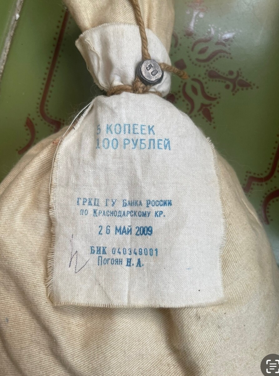 Банковский мешок из 5 рублевых монет 2013 года СПМД. Общий номинал – 5000 рублей