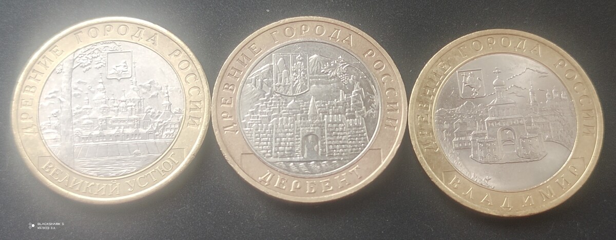 Лот из 8 монет: - 10 р. Торопец - 10 р. Ханты-мансийский автономный округ-Югра - 10 р. Рыбинск - 10 р. Городец - 10 р. Рыльск - 10 р. Ивановска область - 10 р. Омская область - 10 р. Хабаровский край