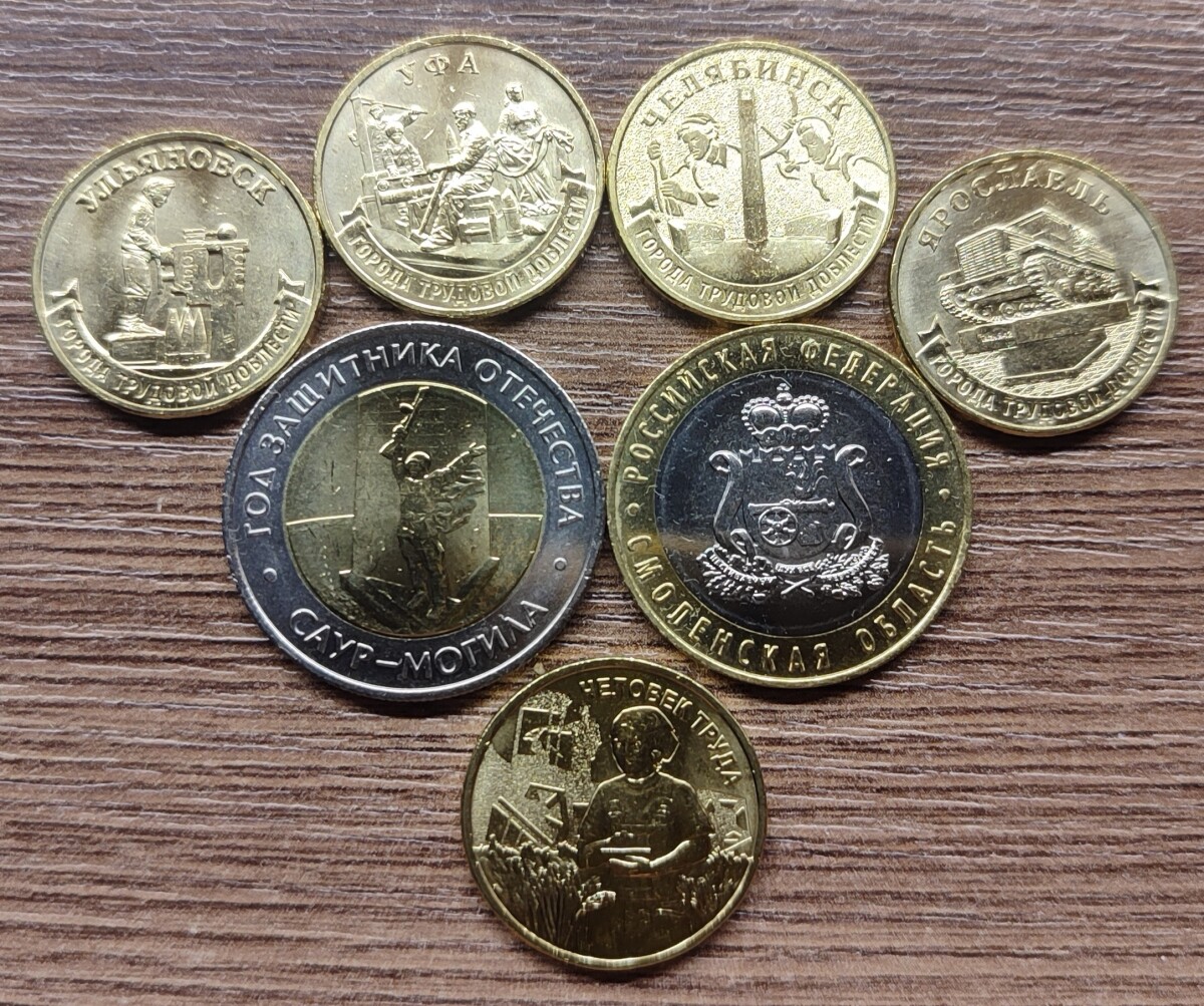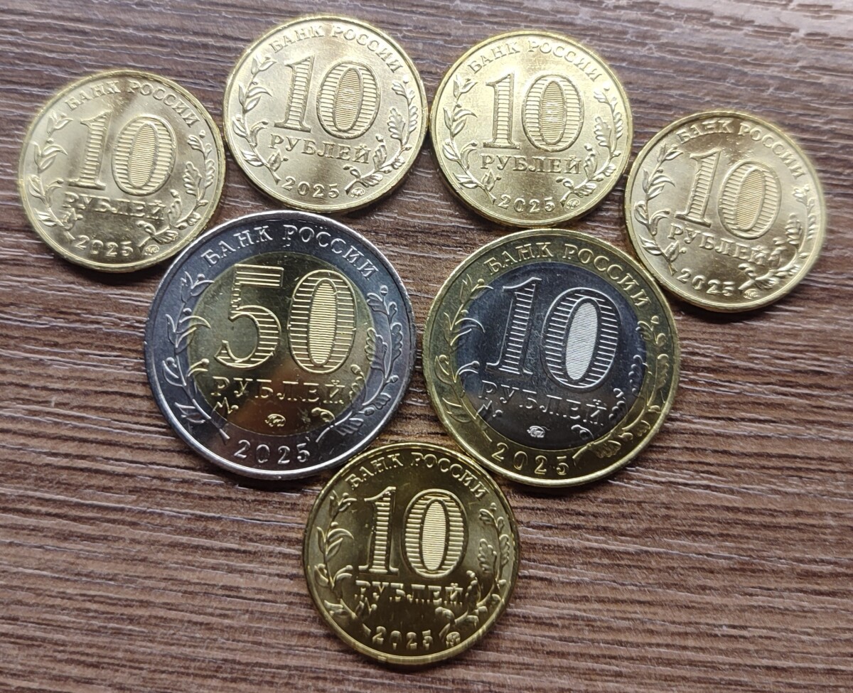 50 рублей 2025 года ММД «Саур-Могила» и 10 рублей 2025 года ММД «Работник сельского хозяйства и перерабатывающей промышленности». Лот из 2 монет