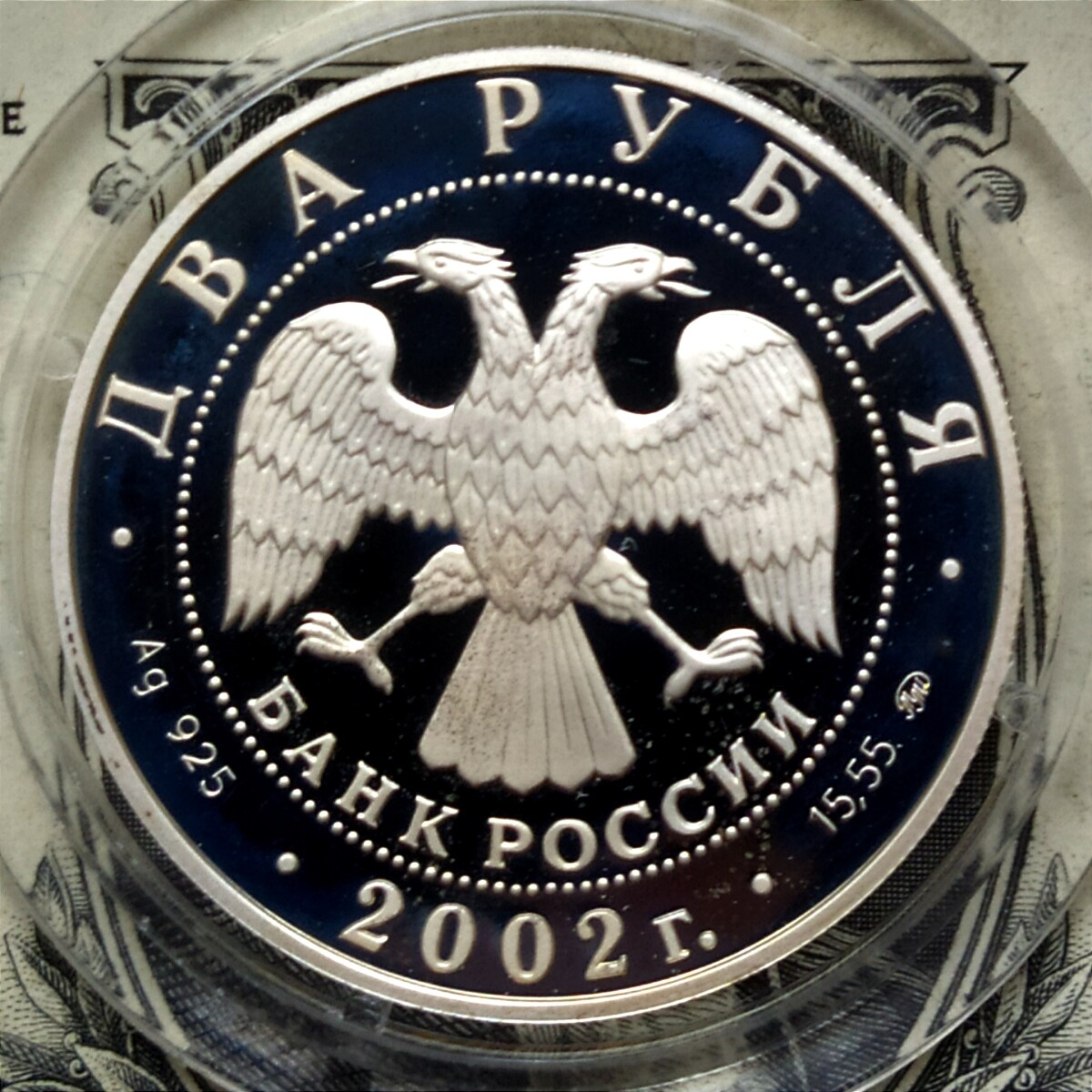 2 рубля 2002 года СПМД «Дева» Proof. Серебро 925 пробы, 15.55 грамм чистого металла. Состояние на фото