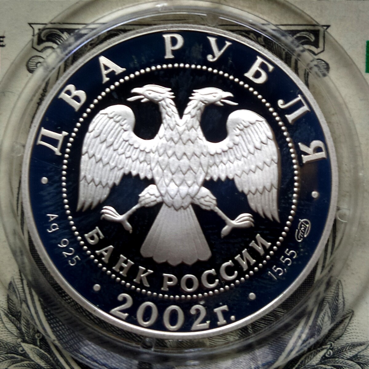 2 рубля 2002 года ММД «Скорпион» Proof. Серебро 925 пробы, 15.55 грамм чистого металла. Состояние на фото