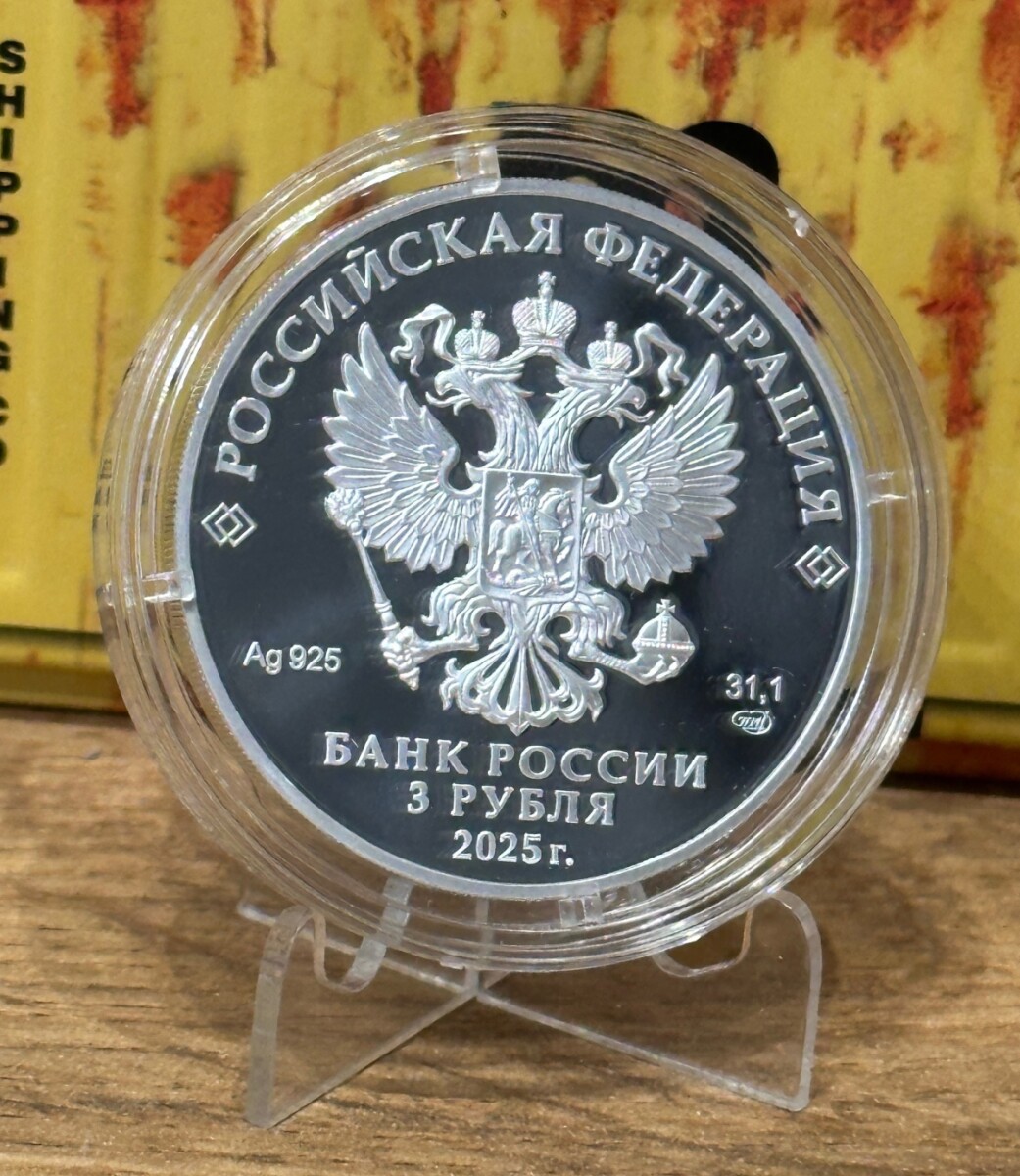 3 рубля 2025 года СПМД «Фиксики» Proof. Серебро 925 пробы, 31.1 грамм чистого металла. Состояние на фото