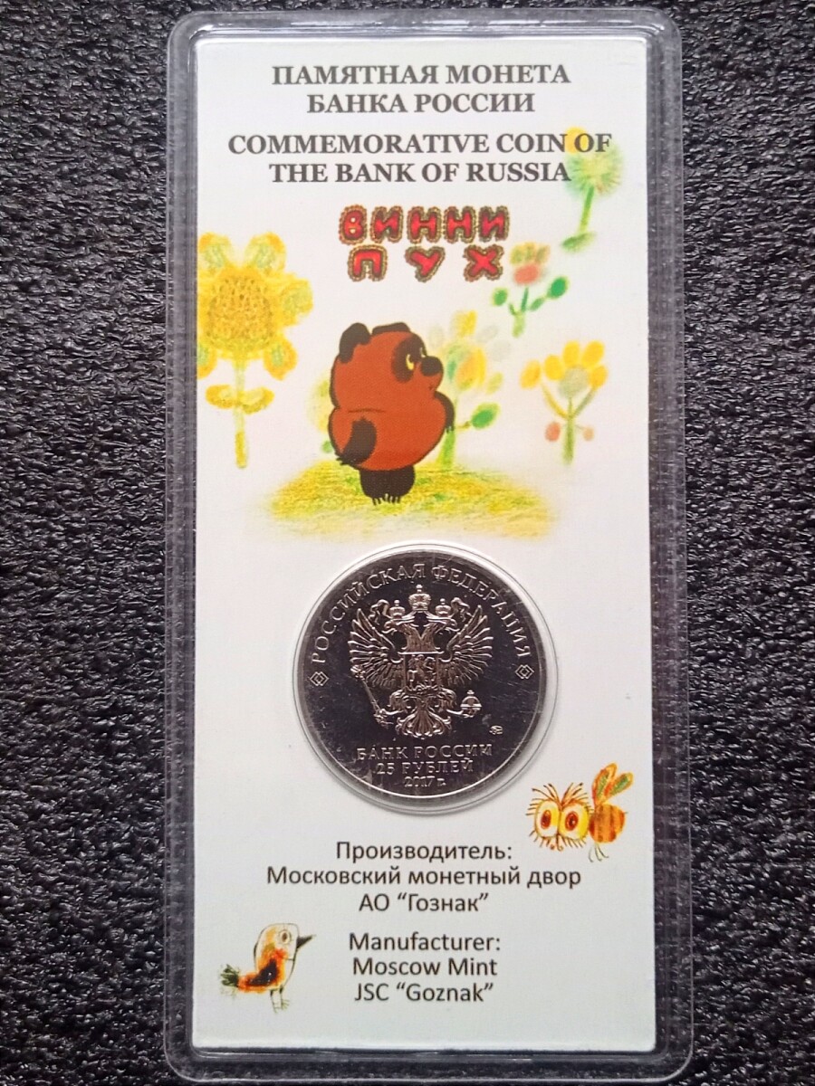 25 рублей 2017 года ММД «Винни Пух» (Цветные). Состояние на фото