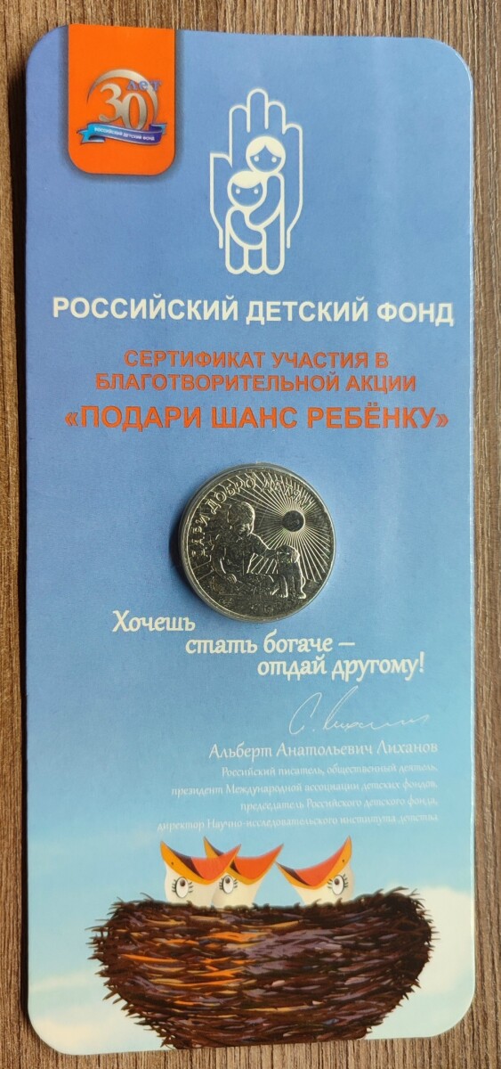 25 рублей 2017 года ММД «Дари добро детям». Состояние на фото