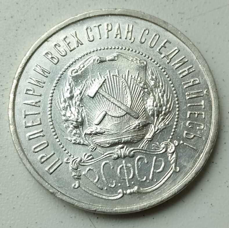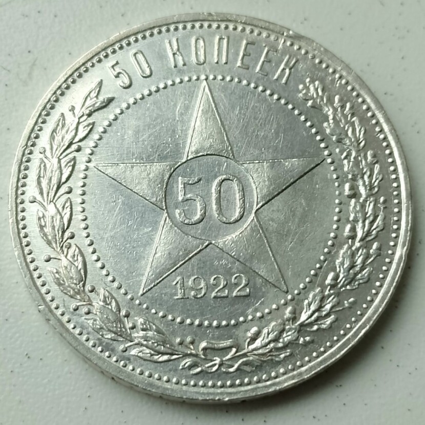50 копеек 1922 года ПЛ. Серебро 900 пробы, 9 грамм чистого металла. Состояние на фото