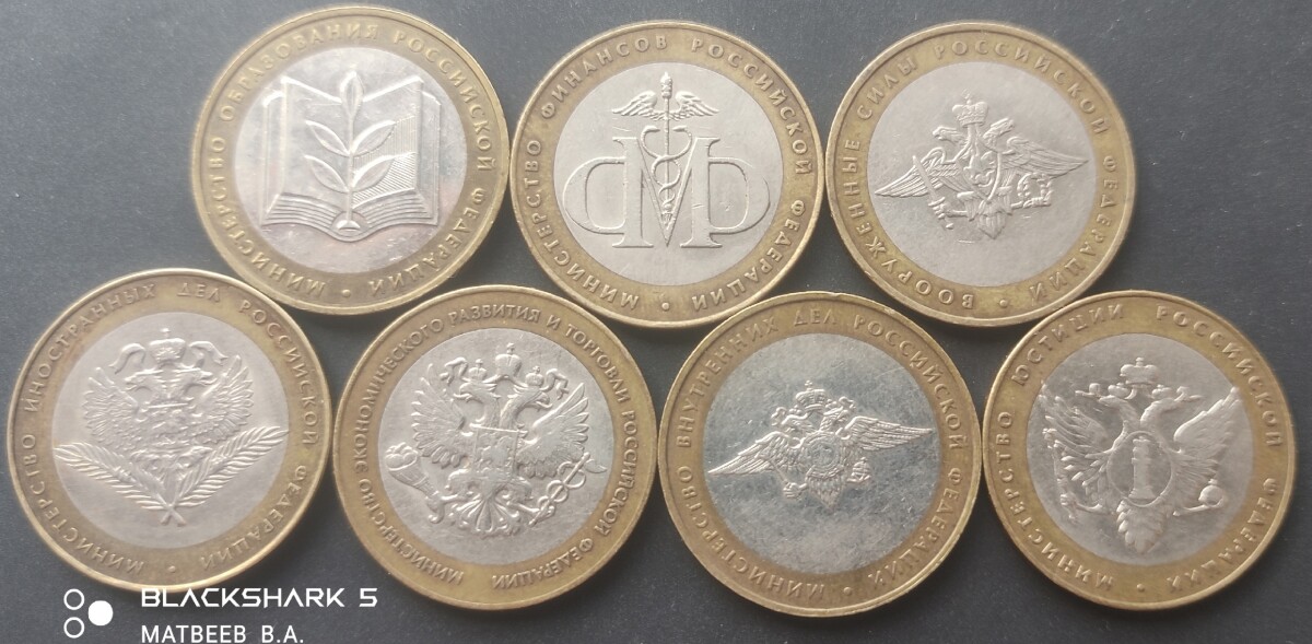 10 рублей «министерства» - полный набор из 7 монет, состояние на фото