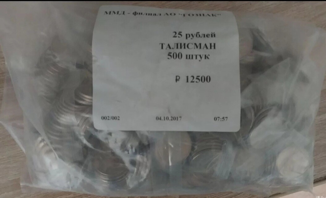25 рублей 2018 года ММД «Чемпионат мира по футболу» (Забивака), банковский мешок из 500 монет! Общий номинал 12 500 рублей