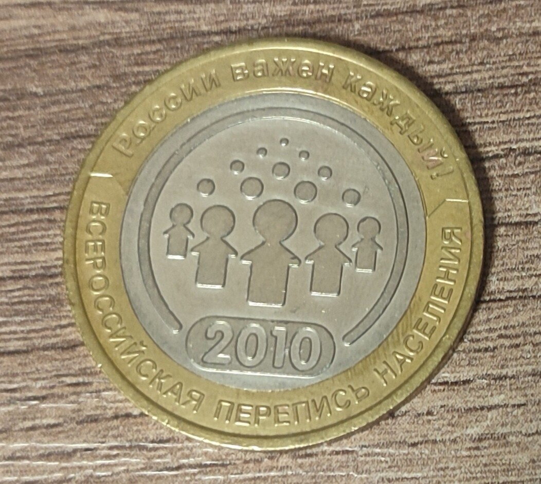 10 рублей 2010 года СПМД «Всероссийская перепись населения». Состояние на фото