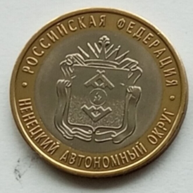 10 рублей 2010 года СПМД «Ненецкий автономный округ». Состояние на фото, в лоте 2 монеты