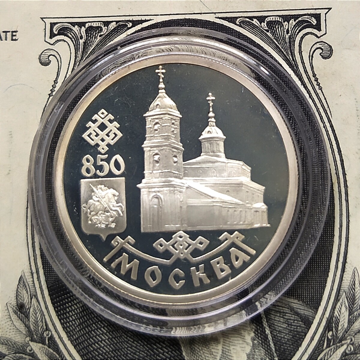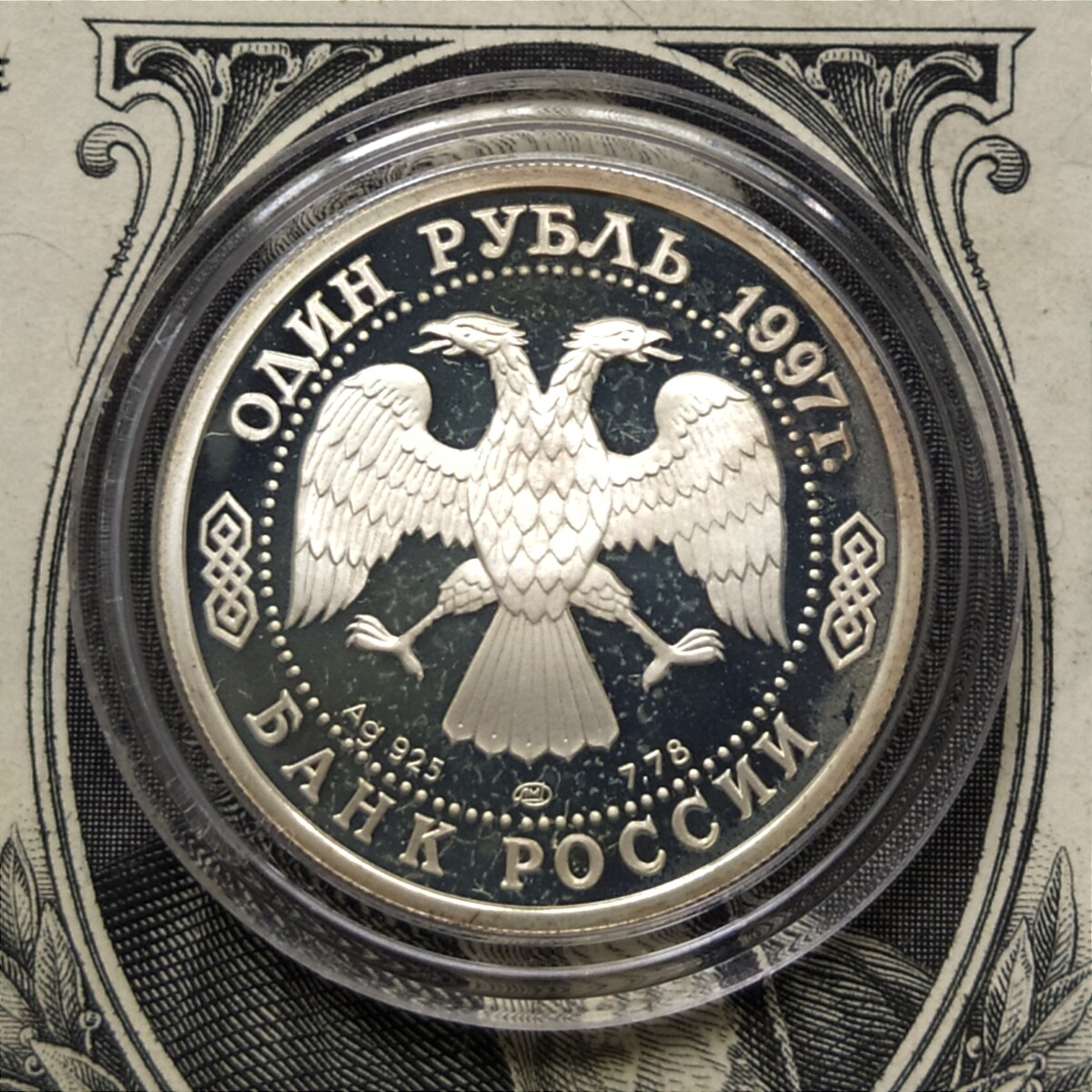 1 рубль 1997 года ЛМД «850-летие основания Москвы» (Казанский собор) Proof. Серебро 925 пробы, 7.78 грамм чистого металла. Состояние на фото
