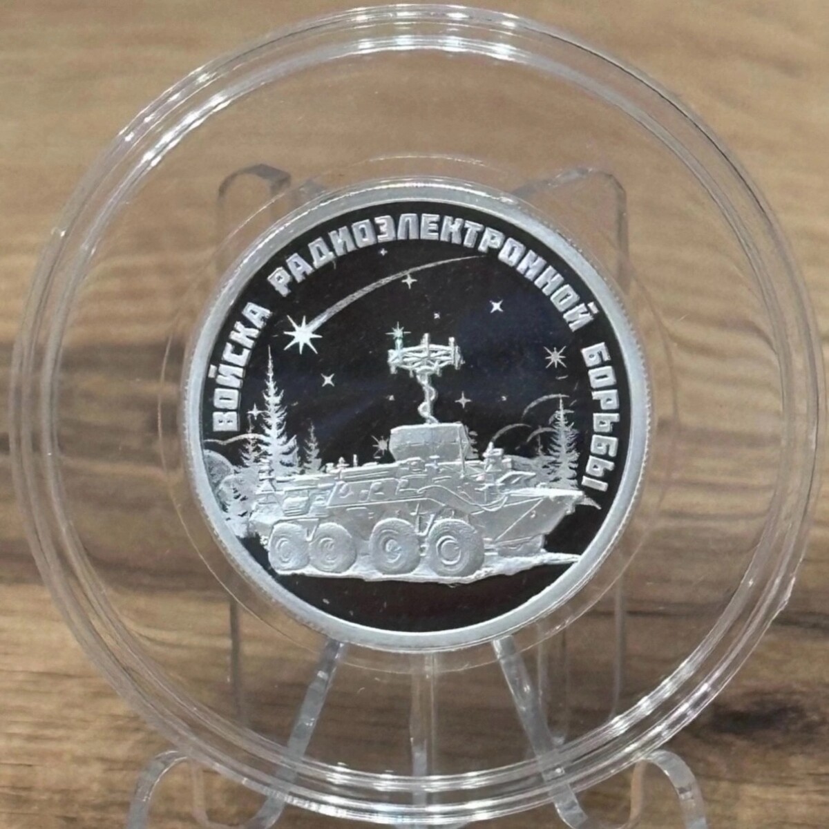 1 рубль 2024 года СПМД «Войска радиоэлектронной борьбы» (Красуха) Proof. Серебро 925 пробы, 7.78 грамм чистого металла. В антивандальной капсуле, с сертификатом