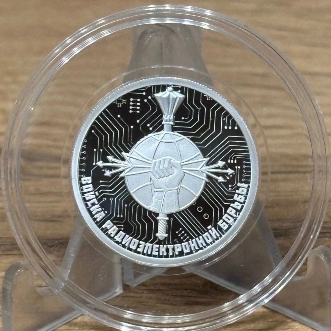 1 рубль 2024 года СПМД «Войска радиоэлектронной борьбы» (Инфауна) Proof. Серебро 925 пробы, 7.78 грамм чистого металла. В антивандальной капсуле, с сертификатом