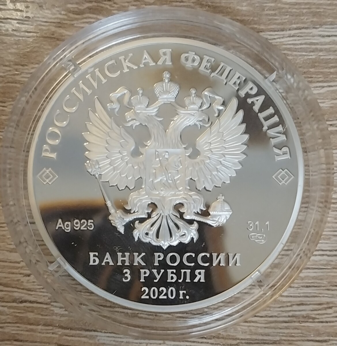3 рубля 2021 года СПМД «Калуга» Proof. Серебро 925 пробы, 31.1 грамм чистого металла