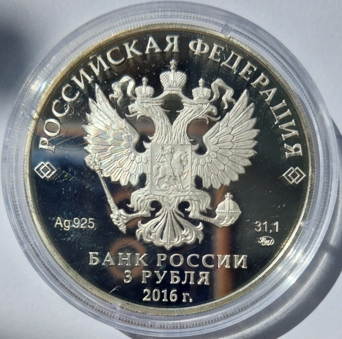 3 рубля 2016 года ММД «Улан-Удэ» Proof. Серебро 925 пробы, 31.1 грамм чистого металла. Состояние на фото