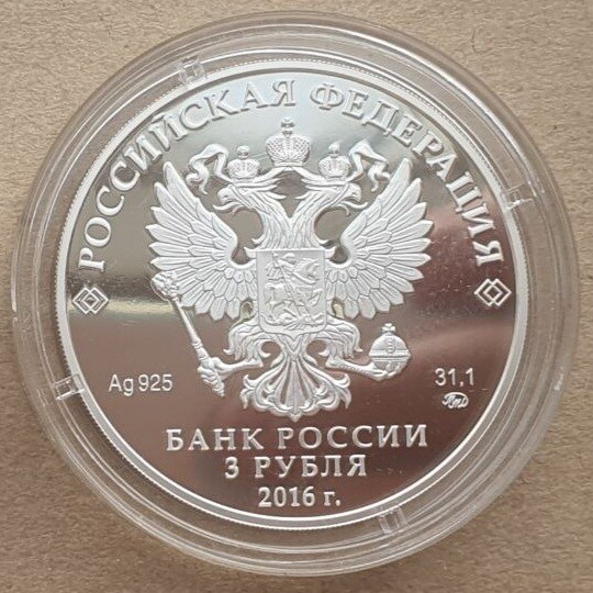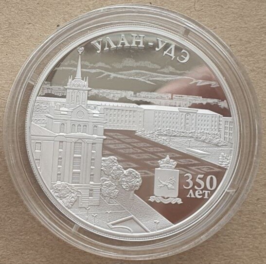 3 рубля 2016 года ММД «Улан-Удэ» Proof. Серебро 925 пробы, 31.1 грамм чистого металла. Состояние на фото