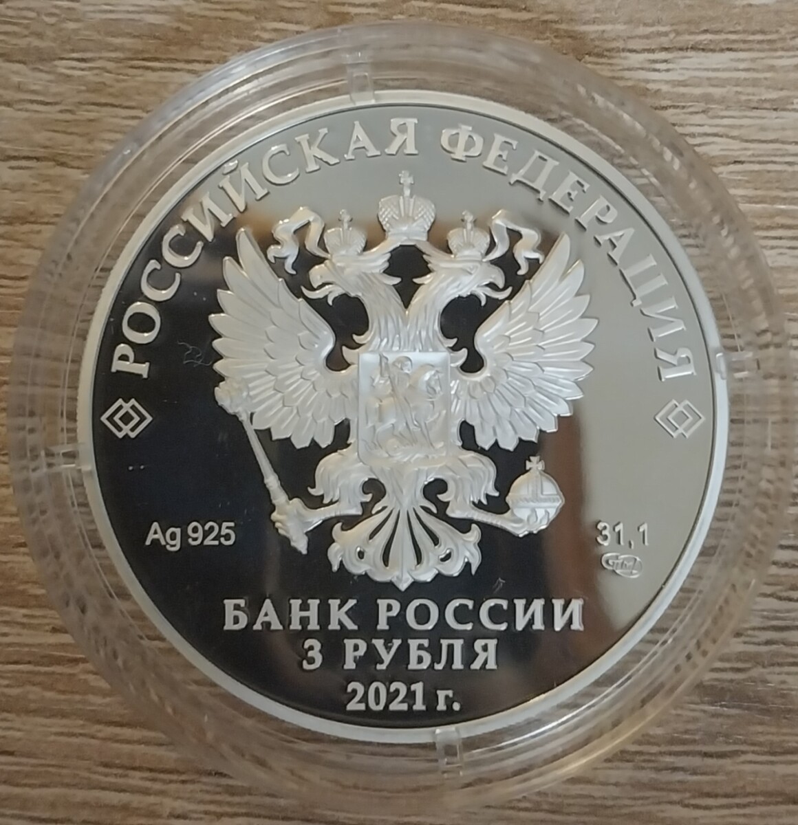 3 рубля 2021 года СПМД «Калуга» Proof. Серебро 925 пробы, 31.1 грамм чистого металла