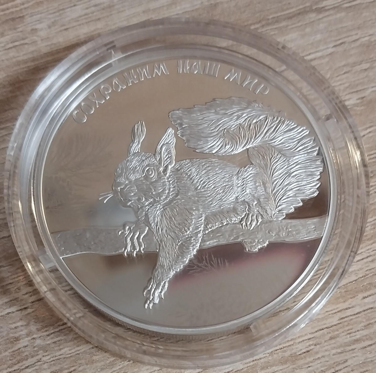3 рубля 2023 года СПМД «Белка обыкновенная» Proof. Серебро 925 пробы, 31.1 грамм чистого металла. Состояние на фото
