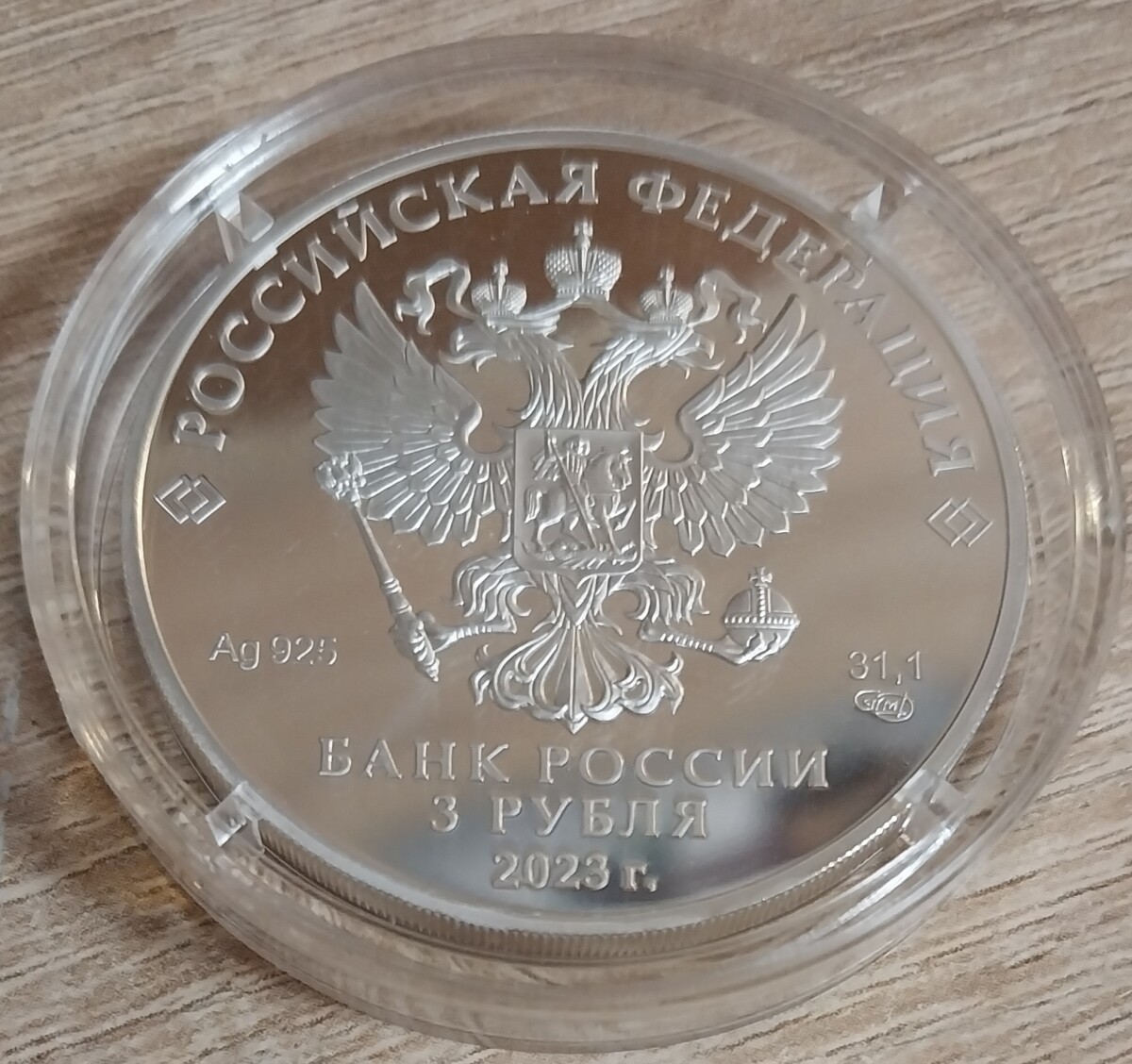 3 рубля 2025 года СПМД «Черкесск» Proof. Серебро 925 пробы, 31.1 грамм чистого металла