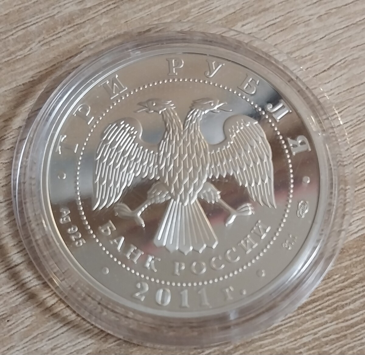 3 рубля 2011 года СПМД «СНГ» Proof. Серебро 925 пробы, 31.1 грамм чистого металла. Состояние на фото