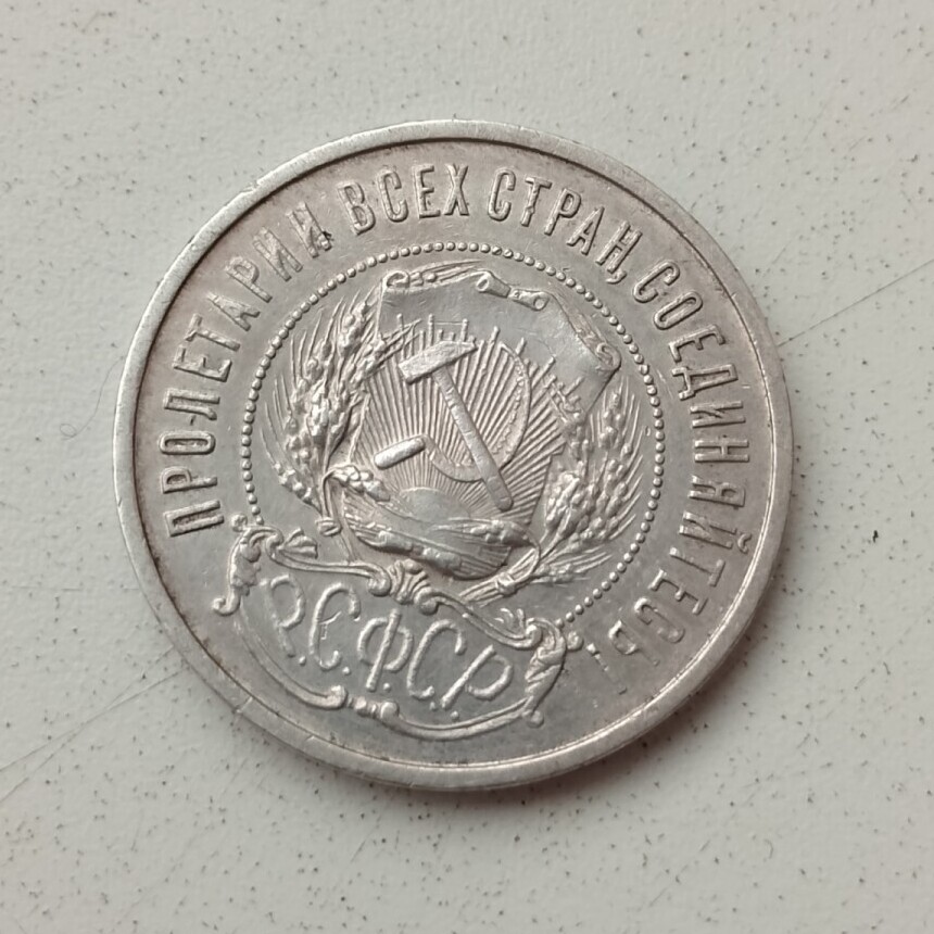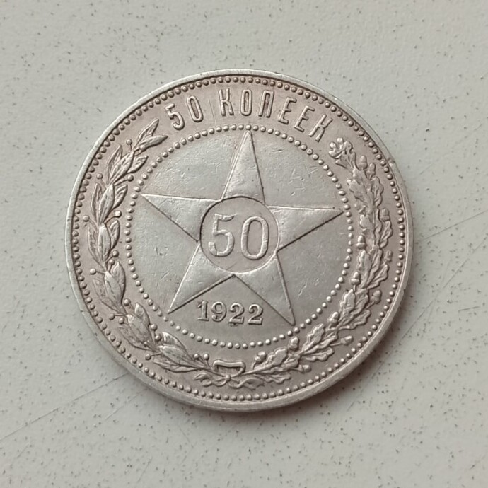 50 копеек 1922 года ПЛ. Серебро 900 пробы, 9 грамм чистого металла. Состояние на фото