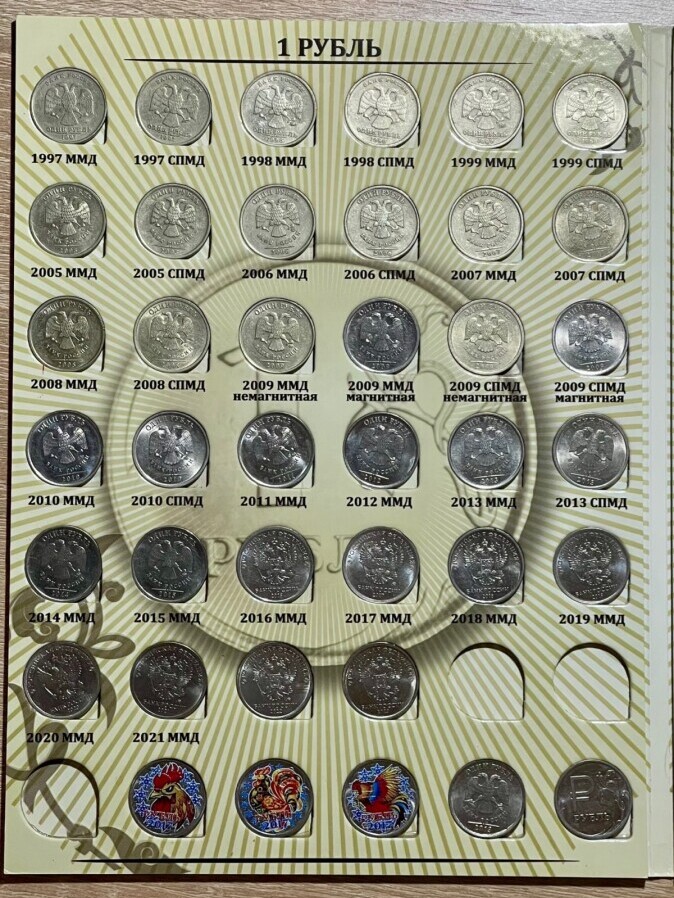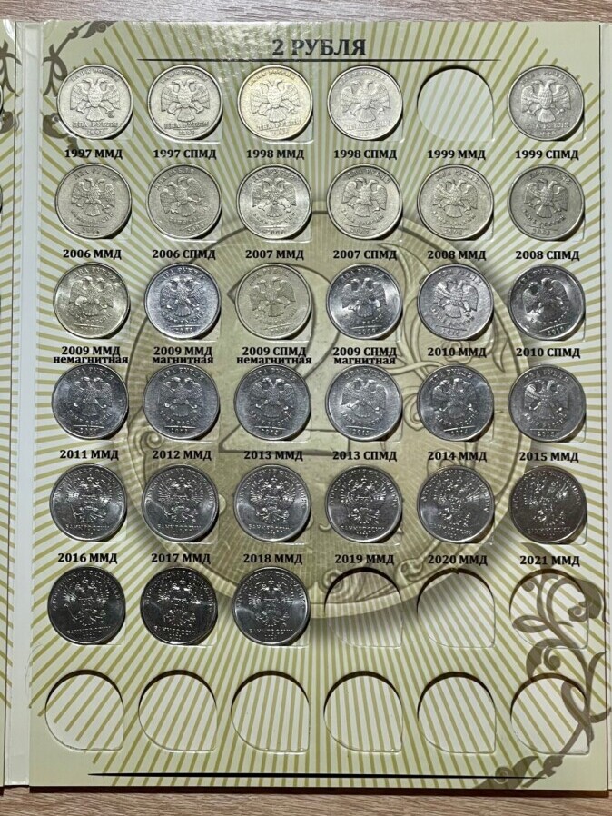 Набор монет в альбоме (106 биметалл, 48 сталь, 4 биметалл с гравировкой, 1 Алания гурт "СОЧИ", 1 Алания "МАГНИТНАЯ")