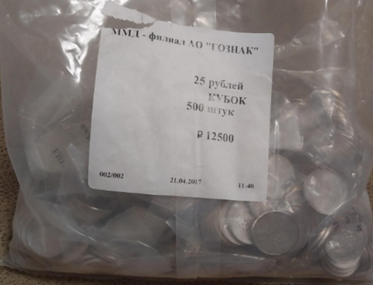 25 рублей 2018 года ММД «Чемпионат мира по футболу» (Кубок). Мешок из 500 монет (общим номиналом 12.500 рублей)!