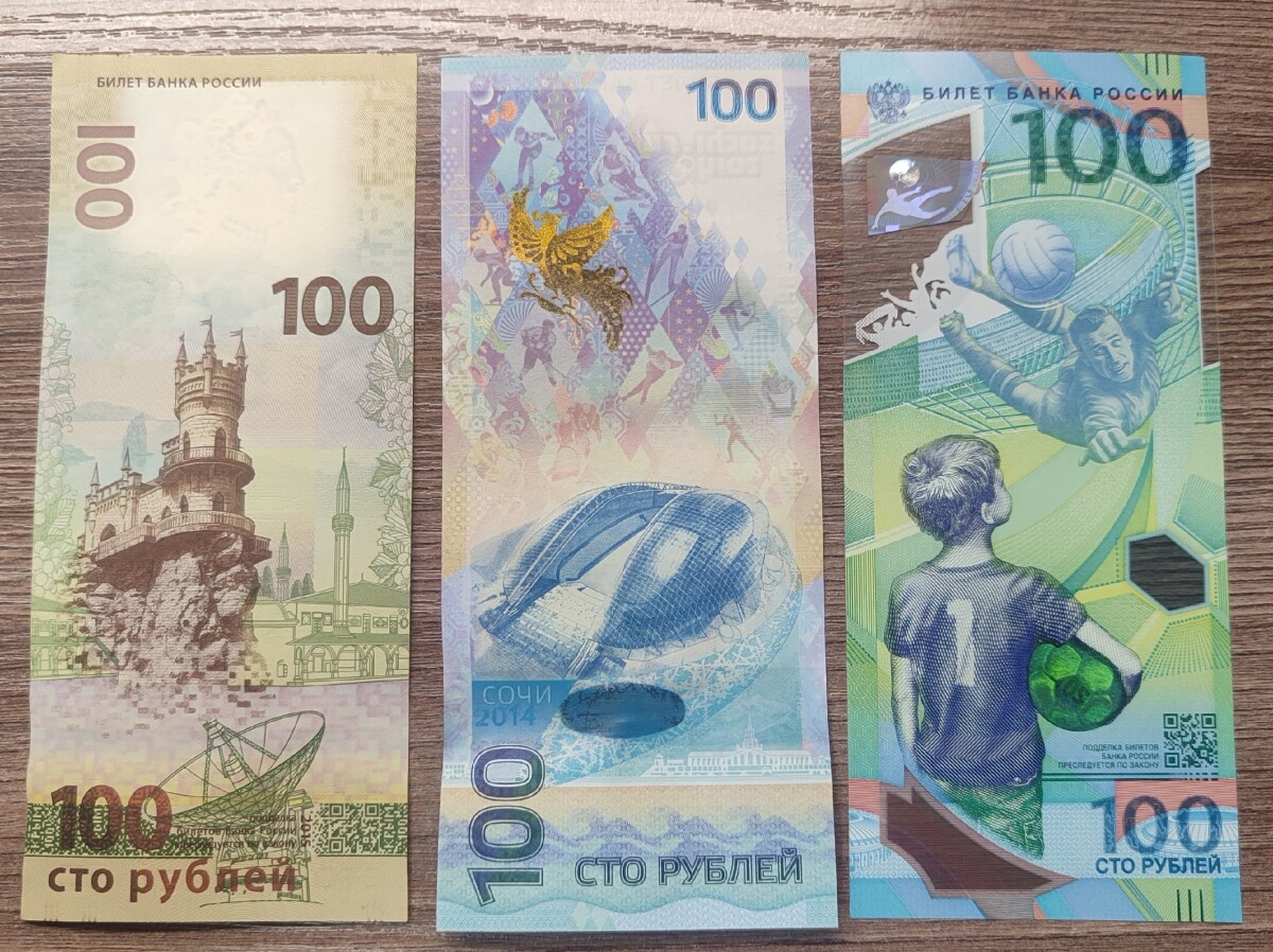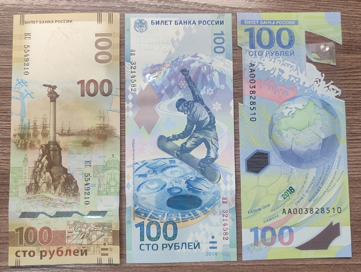 Купюры 100 руб. Фифа двух разных серий АА и АВ. Интересные окончания номеров. Состояние на фото. Именно эти купюры в лоте