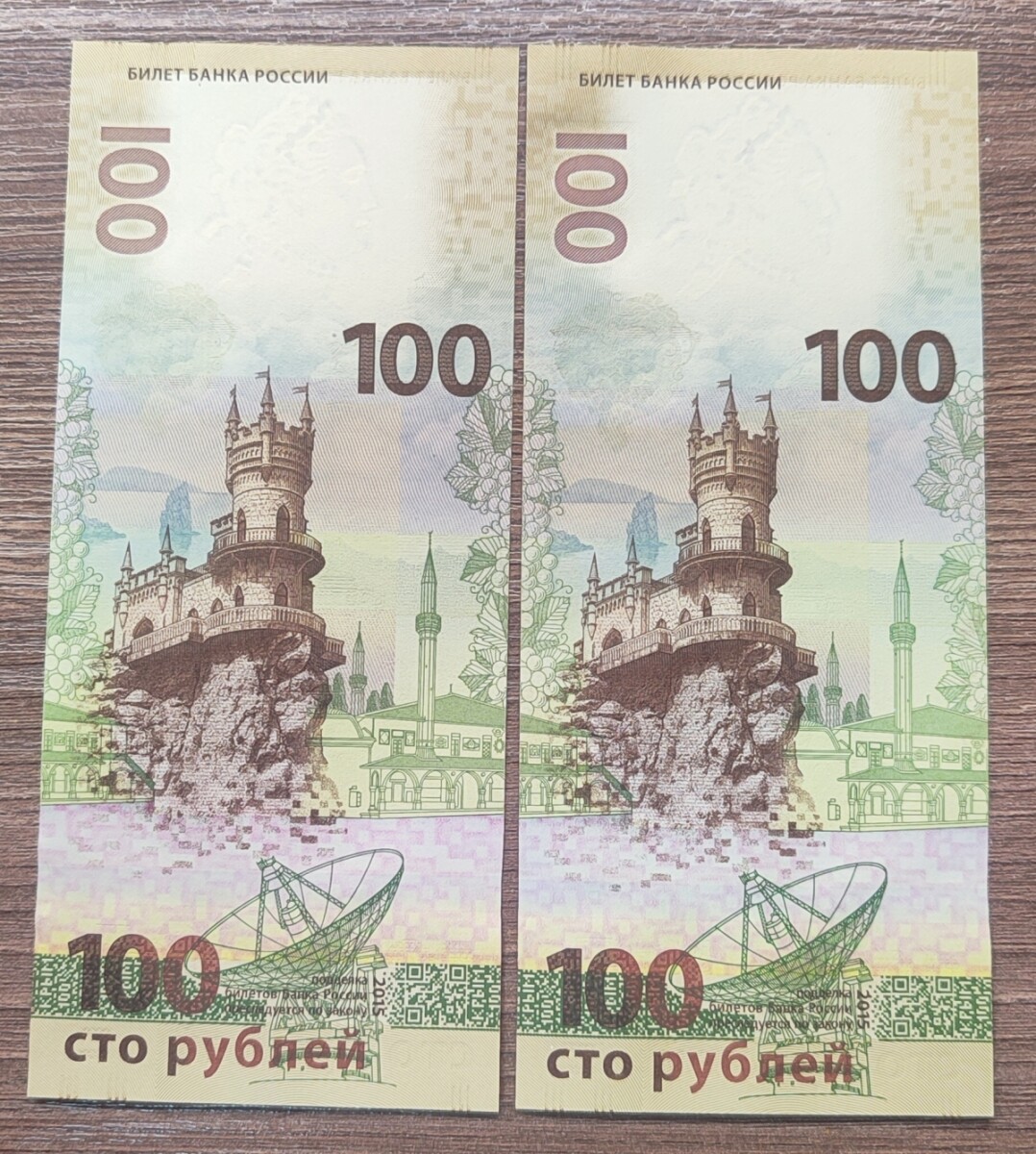 Купюры 100 руб. Фифа, Крым, Сочи. Состояние на фото. Именно эти купюры в лоте