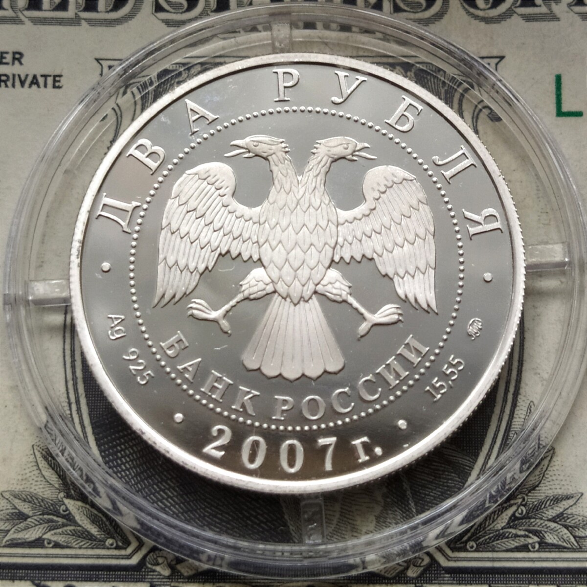 2 рубля 2008 года СПМД «Ландау» Proof. Серебро 925 пробы, 15.55 грамм чистого металла. Состояние на фото