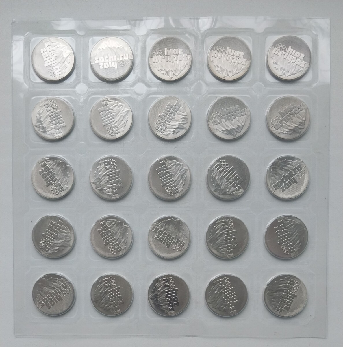 25 рублей 2014 года «Сочи: факел», лист из 25 монет