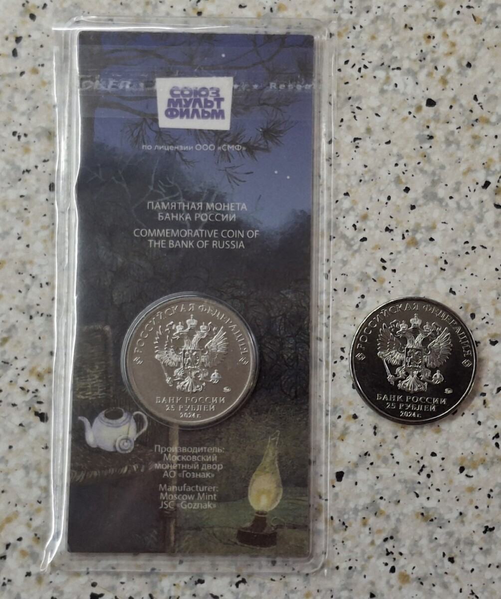 25 рублей 2017 года ММД «Три богатыря». 25 рублей 2017 года ММД «Винни Пух». 25 рублей 2018 года ММД «Ну, погоди!». 25 рублей 2019 года ММД «Бременские музыканты». 25 рублей 2019 года ММД «Дед Мороз и лето». 25 рублей 2020 года ММД «Крокодил Гена». 25 рублей 2020 года ММД «Барбоскины». 25 рублей 2021 года ММД «Умка». 25 рублей 2021 года ММД «Маша и Медведь». 25 рублей 2022 года ММД «Иван Царевич и Серый Волк». 25 рублей 2024 года ММД «Ежик в тумане». Состояние на фото-лот из 11 монет