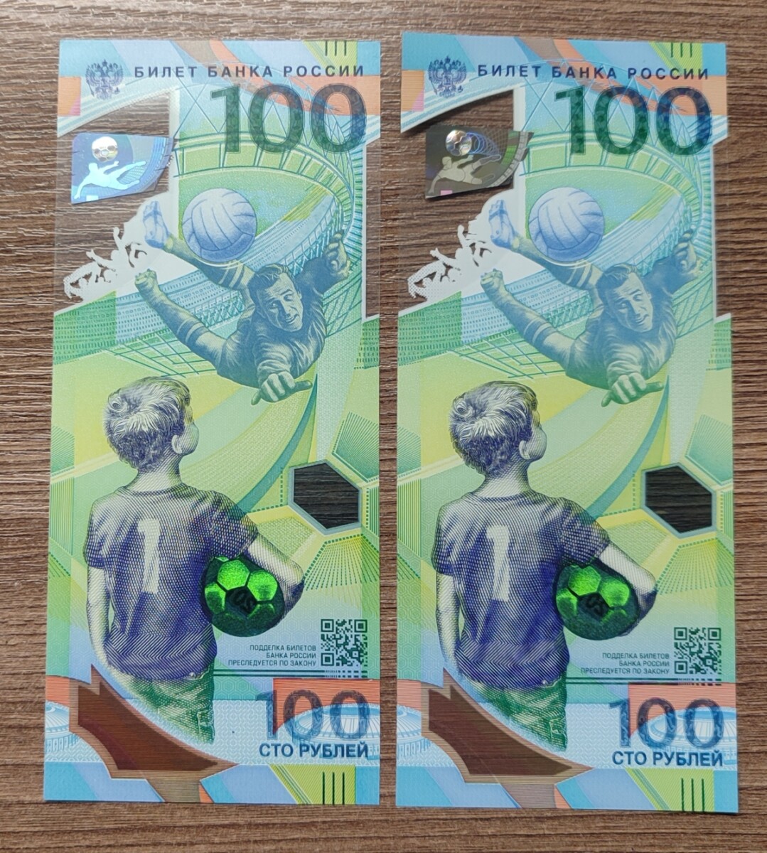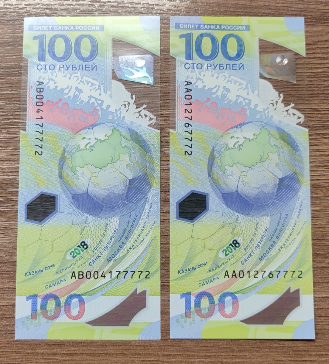 Купюры 100 руб. Фифа серии АА. Номера подряд. Состояние на фото. Именно эти купюры в лоте