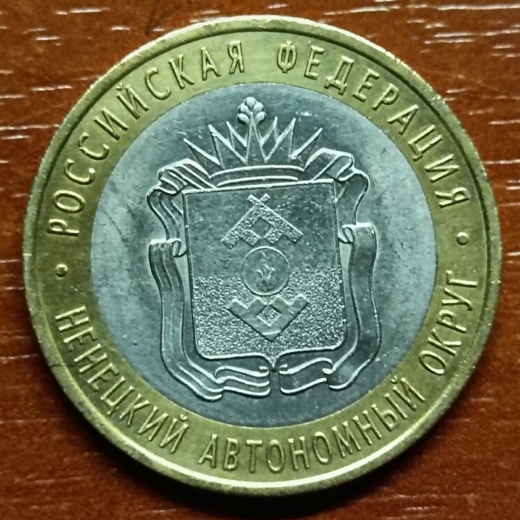 10 рублей 2010 года СПМД «Ненецкий автономный округ». Состояние на фото, в лоте 2 монеты