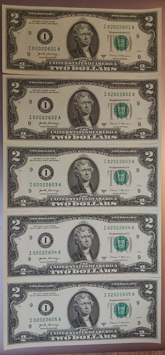 Лот банкнот 5$ 2021 года (номера по порядку 5 шт). Состояние на фото