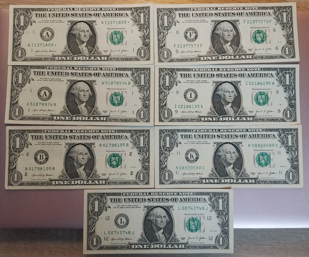Лот банкнот 1$ 2009 года (А, В, G, J, L)