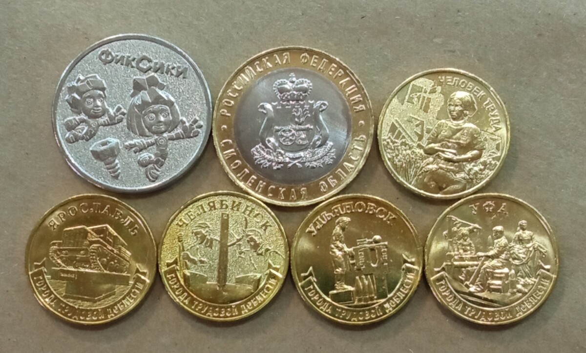 10 рублей «министерства» - полный набор из 7 монет, состояние на фото