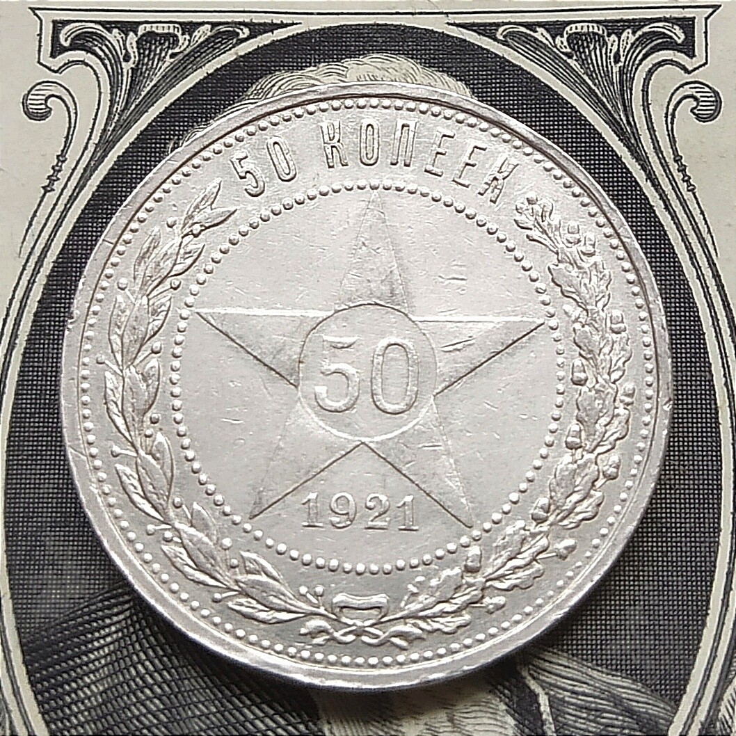 Один полтинник 1927 года ПЛ. Серебро 900 пробы, 9 грамм чистого металла. Состояние на фото